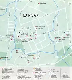 Kangar (Kedah Malay: Kangaq) is the state capital and the largest town in Perlis, Malaysia.[1] It has a population of 48,898 and an area of 2,619.4 ha. It is located next to the Thailand border, in the northernmost point of Peninsular Malaysia. It is situated by the Perlis River.[2]