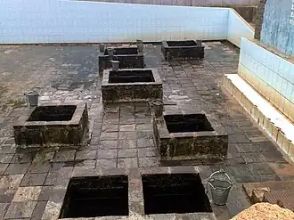 The Kanniya Hot Springs (Sinhala: කන්නියා උණුදිය ලිං, Tamil: கன்னியா வெந்நீரூற்று) is a site with hot wells located in Trincomalee, Sri Lanka. There are seven wells in a square shape. Wells are only 3–4 feet deep and you can clearly see the bottom. The temperature is considerably high but vary slightly from one spring to another.[1] Wells run out of water, when 10-15 buckets of water are taken out.[2]