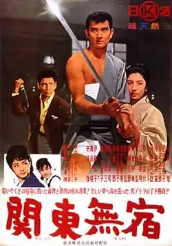 Kanto Wanderer (関東無宿, Kantō mushuku; aka The Woman Sharper and Kanto Vagabonds) is a 1963 Japanese yakuza film directed by Seijun Suzuki and starring Akira Kobayashi, Chieko Matsubara, Daizaburo Hirata and Hiroko Itō.[2] It was a programme picture produced by the Nikkatsu Company to fill out the second half of a double bill with Shohei Imamura's The Insect Woman. The film was based on a novel by Taiko Hirabayashi and had been previously adapted to the screen as Song from the Underworld (1956) by Suzuki's mentor, Hiroshi Noguchi. The story involves Katsuta, a yakuza member who falls in love and is torn between giri (duty) and ninjo (humanity). The Kanto of the title refers to a large plain on which Tokyo is located.