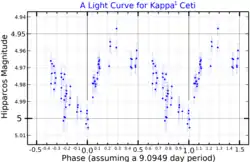 A light curve for Kappa1 Ceti, plotted from Hipparcos data[15]
