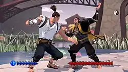 Eventually, the player will fight Akuma directly, then enter Mariko's cell to rescue her.[14] If the hero approaches Mariko while in a fighting stance, she will deliver a kick that results in instant death. Only a non-fighting stance approach will result in the hero rescuing Mariko and the two departing the fortress together.