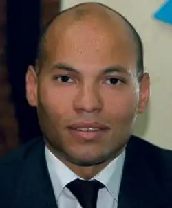 Karim Meïssa Wade (born 1 September 1968) is a Senegalese politician who served in the government of Senegal as Minister of State for International Cooperation, Regional Development, Air Transport, and Infrastructure from May 2009 to April 2012.[1] He is the son of Abdoulaye Wade, who was President of Senegal from 2000 to 2012.[2] Before joining the government, Karim Wade was President of the National Agency for the Organisation of the Islamic Conference (Agence Nationale de l'Organisation de la Conférence Islamique, ANOCI)[3] and served as an advisor to his father.[4] He was widely seen as a possible successor to his father as president, and his father was widely believed to be grooming him for the position.[5]