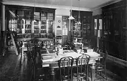 In four floors, along with classrooms for 650 occupants, eight beautifully equipped specific-subject classrooms were built—for physics, chemistry, natural history, history, geography, drawing, modeling, and choir (three of these had auditoriums in the form of amphitheaters); there were additionally a carpentry studio, a library numbering 12 000 books in Russian, German, French, English, Latin and Greek, a sports hall and a cafeteria.