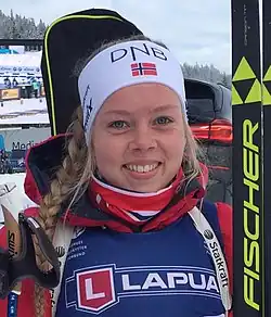 The Norwegian athlete has numerous victories in races at the IBU Cup stages. In 2020, she, along with Endre Strømsheim, won the European Championship in the single mixed relay.[3]