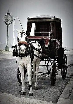 The karozzin is a Maltese traditional mode of transport[1] consisting of a carriage pulled by a horse. It was once popular for general transit and is still used in ceremonies such as funerals, and as a tourist attraction. It is mostly found in Mdina and Valletta, and dates to the mid-nineteenth century.[2]