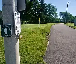 It contains flat and easy-to-ride portions through green farmlands and pastoral vistas, as well as the hilly geography of Jo Daviess County, Chicago streetscapes and Lake Michigan, the Mississippi river, the Upper Illinois River Valley, Small Town America and medium-sized cities and suburbs.[3] Those who complete a trail journal and confirm completion with the IDNR are granted the title of Trailblazer.[4]