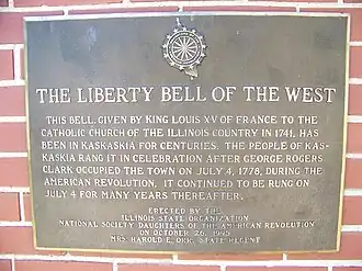 - ^ "Kaskaskia Bell State Historic Site - Kaskaskia, Illinois". greatriverroad.com. Archived from the original on 2018-01-27. Retrieved 2018-01-27.
