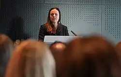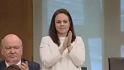 In March 2018, she delivered an entire speech to the parliament in Gaelic during a plenary debate on the language.[31] She has spoken in favour of UNESCO Intangible Cultural Heritage status as a possible way to protect the language.[32] She campaigned for local issues, such as increasing the number of foster carers in the Highlands,[33] and raised concerns of a lack of teachers in specialist subjects in the Highlands.[34]