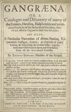 - Edwards, Thomas (1646). Gangraena. London: Ralph Smith. Retrieved 27 January 2016.