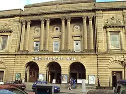 After her Carlisle victories, Ferrier began to receive offers of singing engagements. Her first appearance as a professional vocalist, in autumn 1937, was at a harvest festival celebration in the village church at Aspatria.[18] She was paid one guinea.[n 1] After winning the gold cup at the 1938 Workington Festival, Ferrier sang "Ma Curly-Headed Babby" in a concert at Workington Opera House. Cecil McGivern, producer of a BBC Northern radio variety show, was in the audience and was sufficiently impressed to book her for the next edition of his programme, which was broadcast from Newcastle on 23 February 1939. This broadcast—her first as a vocalist—attracted wide attention, and led to more radio work, though for Ferrier the event was overshadowed by the death of her mother at the beginning of February.[20][21] At the 1939 Carlisle Festival, Ferrier sang Richard Strauss's song All Souls' Day, a performance which particularly impressed one of the adjudicators, J. E. Hutchinson, a music teacher with a considerable reputation. Ferrier became his pupil and, under his guidance, began to extend her repertoire to include works by Bach, Handel, Brahms and Elgar.[21][22]