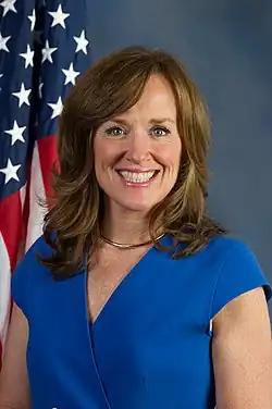 Kathleen Maura Rice (born February 15, 1965) is an American lawyer and politician who served as the United States representative for New York's 4th congressional district from 2015 to 2023. She is a member of the Democratic Party. Before serving in Congress, Rice served as the Nassau County district attorney, and, before that, she served as a federal prosecutor in the U.S. Attorney's Office in Philadelphia and as an assistant district attorney in the Kings County District Attorney's Office in New York City.