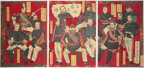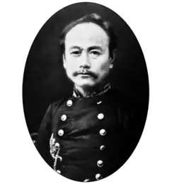 Kawaji Toshiyoshi (川路 利良; 17 June 1834 – 13 October 1879), also known as Kawaji Toshikane,[1] was a Japanese military general, politician, and samurai. during the Meiji period.[2] A Satsuma Domain samurai initially tasked to study foreign systems for application in the Japanese military, Kawaji fought against forces loyal to the Tokugawa shogunate during the Boshin War. Later, his work on setting up the Japanese police at the aftermath of the Meiji Restoration, first as rasotsu, and then as keisatsu, earned him the recognition as the founder of Japan's modern police system (日本警察の父; lit. 'Father of Japanese Police').[3][4][5][6] Besides his police and military work, he was also noted for his contributions to the development of Kendo, a Japanese martial art.[7][8]