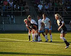 On January 11, 2013, as part of the NWSL Player Allocation, Kyle joined the Seattle Reign FC in the National Women's Soccer League (NWSL).[8][9] After playing a few games as a midfielder, Kyle shifted to a centre back position and helped strengthen a young defensive line. As a defender, Kyle was a leading scorer for the Reign scoring three goals on the season, all of them penalty kicks.[10][11][12][13] Kyle made 21 appearances for the squad, starting in nineteen matches and tallying 1,752 minutes played.[14]