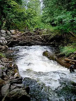 Both this river and Picanoc River flow directly through local towns and are used for recreational activities such as fishing, rowing, and swimming. Cottages and homes are along the riverbanks. The pollution of the Gatineau, Kazabazua, and Pontiac rivers by both treated and untreated leachate has been a recent concern and "could have devastating effects upon residents and tourism throughout the region."[3] One third of the local watershed—including any toxic effluent that might be present—flows into the Kazabazua River system.[3] When water levels rise, the Kazabazua and Pontiac rivers sometimes back up into Lac Shea causing pollutants that they carry end up in this lake.[4] The Kazabuza and Picanoc rivers are among several local bodies of water in Pontiac Regional County Municipality in which delicate aquatic and semi-aquatic animals such as wood turtles have been studied.[4]