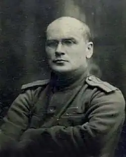In September 1908, Venclauskis became the first chairman of cultural organization Varpas (bell) which organized concerts, lectures, amateur theater performances. His wife, together with Gabrielius Landsbergis-Žemkalnis, directed several plays.[7] Venclauskis co-directed a play in 1911.[4] His activities attracted the attention of the Tsarist police. His home was searched and he was briefly arrested in September 1912.[3] The arrest spoiled his plans for running in the elections to the Russian State Duma.[8] During World War I, he organized aid to war refugees. When fighting reached Šiauliai, he retreated to Minsk.[2] He worked as a jurist of the All-Russian Zemstvo Union dealing with the 10th Army. After the February Revolution, he became a justice of the peace in Minsk.[4] He returned to Lithuania in summer 1917[2] or in June 1918.[4] Venclauskis, together with Peliksas Bugailiškis and Stasys Lukauskis, managed to get a permission from the Ober Ost officials to reopen the Šiauliai Gymnasium. They organized Jėga Society (power, strength), chaired by Venclauskis, to support the school which opened in April 1918 with 200 students.[4]