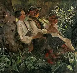 For a short time, he studied law at the University of Lviv, but did not return there after serving his mandatory stint with the Austro-Hungarian Army.[2] From 1900 to 1908, he studied at the Kraków Academy of Fine Arts under Leon Wyczółkowski, Józef Mehoffer and Stanisław Wyspiański. He received a scholarship and continued his studies in Rome, Munich and Paris at the Académie Colarossi.[3] During this time, he married an actress named Bronisława Rudlicka (1875–1920).