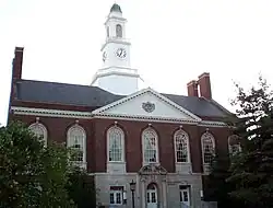 Beginning in 1940, Johnson was a member of the State Democratic National Committee, serving until 1948.[6] On June 6, 1942, he was named to the board of regents of Eastern State College (now Eastern Kentucky University or EKU), a position he held for eight years. EKU's Keen Johnson Building, a 1939 Works Progress Administration project, was named in honor of him. The building and its clock tower is one of the most recognizable landmarks on the university's campus.[5]