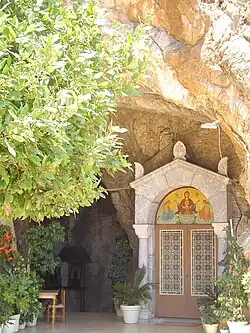 Rivers and springs as locations of fresh water played a vital role in Greece at all times – in ancient Greek mythology these locations were the manifestation of gods. Well-kept styled fountains were central points and sources of community life and identification, and are still vivid symbols especially in rural tradition throughout Greece. In Kefalari there is a cave approximately 60 m (200 ft) above the karst spring,[4] today decorated and dedicated to the Blessed Virgin Mary. The cave, spring ("Zoodochos Pigi"), and an orthodox church became a center for worship of the "Panagia Kefalariotissa". The church, with foundations dating back to Roman emperors, was reconstructed at its present dominating location in 1835. Today Kefalari is a place of pilgrimage, especially for the nearby Nea Kios.