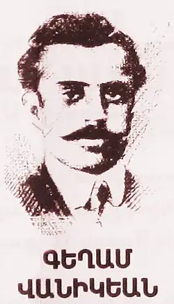 Kegham Vanigian (Armenian: Գեղամ Վանիկեան), also known as "Vanig," (1889–1915) was an Armenian political activist and newspaper editor. Vanigian is best remembered as the founder of the socialist monthly Gaidz of the Hnchak party. Vanigian was executed by the Turkish government for his political activities in 1915 during the Armenian genocide.