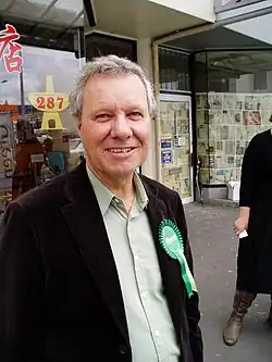 Locke stood as a Green Party candidate in the 1999 election and was elected as a list MP, ranked seventh on the party list. Locke's election as the final Green list MP, at the expense of Labour, deprived the Labour–Alliance government of a majority but the Green Party agreed to provide confidence and supply to the government.[21] Locke was returned to Parliament as a list MP in the 2002, 2005 and 2008 elections. In the latter three elections, he stood unsuccessfully in the Epsom electorate.[22][23][24]