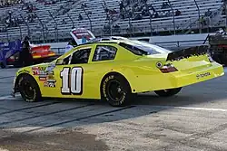 Due to sponsorship obligations with Unilever and their Hellmann's Mayonnaise brand, Dale Earnhardt Jr. ran the No. 88 car at the 2010 season opener at Daytona and Danica Patrick ran the No. 7 car with her sponsor GoDaddy.com, forcing Bires to sit out.[5] In his debut at Fontana, he did have a seventh place finish. Even more curious than his missing Daytona was when Bires was removed from the No. 88 car in favor of Cup driver Jamie McMurray after only five races run, with only one finish below seventeenth (a crash at Las Vegas).[6] Earnhardt Jr. cited chemistry issues between Bires, JR Motorsports management, and the team including Tony Eury Sr. and Jr., and implied that Bires was taking a seat from "the next Brad [Keselowski], the next Jeff Gordon." Prior to Brad Keselowski, the team had also hastily released Mark McFarland in 2006 after 21 races and Shane Huffman in 2007 after eighteen races.[7] Bires returned to the Braun Racing #10 at Richmond, where he finished 11th, then ran races for Baker-Curb Racing, Team Rensi Motorsports, and RAB Racing.