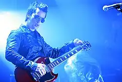 Jones has had a troubled relationship with the national tabloid press and they have often criticised him, his contribution to music, and his vocal abilities.[7] Jones has generated headlines several times by criticising fellow Britpop and post-Britpop musical artists, most notably Radiohead frontman and solo artist Thom Yorke. Jones criticised Yorke's attitude in a 2002 interview due to what he felt was complaining about touring on Radiohead's 1998 home video release, Meeting People Is Easy. He said: "We can all relate to that video – y'know, having to do a hundred fucking idents for radio stations – but that doesn't mean you've got to walk around and be a miserable twat to everybody. Which is what Thom Yorke is mostly."[8][9] He later expressed regret for this comment, since he was a fan of Yorke.[10]