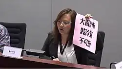 Tung was elected to the Tai Wai constituency in 2011, beating the incumbent Neo Democrats candidate Leung Wing-hung.[1] She was re-elected in 2015.[2] Tung lost her District Council seat amid the surge of pro-democracy support in 2019. She was replaced by Democratic Party candidate Kudama Ng Ting-lam.[4] Speaking about her loss, Tung alleged that she was unable to monitor the vote counting process because she was surrounded by booing voters. Since then, she had filed a petition to have the election results overturned.[5][6]