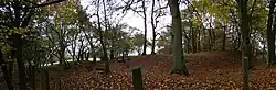 There are three associated scheduled sites containing underground structures, rare examples of Auxiliary Unit constructions built in World War II to defend against Nazi invasion: an operational base (location: 51.6211, −2.8971, 35 metres diameter) and ammunition store (location: 51.6214, −2.8967, 20 metres diameter) – both in the woods on the northeast side of Pen-toppen-ash – and a 'special duties section' (location: 51.6186, −2.9018, 20 metres square) on the very northwest edge of Pen-toppen-ash.[18]