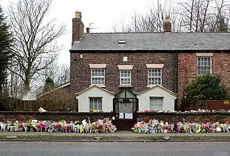 Dodd died aged 90, on 11 March 2018, at his home in Knotty Ash, the same home in which he was born and raised, soon after being hospitalised for six weeks with a chest infection.[58] He had been touring with his stand-up stage show up until the end of 2017. Numerous stars paid tribute, including fellow Liverpudlian Paul McCartney.[59] At his funeral on 28 March, which was led by the Bishop of Liverpool, Paul Bayes, thousands of fans joined the cortege which passed from his Knotty Ash home to Liverpool Cathedral. The service was attended by actors Ricky Tomlinson, Stephanie Cole and Miriam Margolyes, comedians Jimmy Tarbuck, Stan Boardman, Roy Chubby Brown, and Jimmy Cricket, and television executive Michael Grade. After the service, Dodd was laid to rest - alongside both his parents - in a private burial service at Allerton Cemetery in Liverpool. Tickling sticks were placed on various statues around Liverpool in commemoration. At Liverpool Town Hall, St George's Hall, the Cunard Building and Liverpool Central Library, flags were lowered to pay respect.[60]