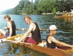 ![]() Coxed pair of Vesper Rowing Club (from left: Vreugdenhil, Mathews, Dreyfus) at the 1976 Lucerne International Regatta. The same crew competed at Montreal that same year. | |