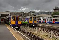 The North London Railway took advantage of the Richmond end of the new route, running trains from Richmond to Broad Street, via Gunnersbury Junction (then known as Brentford Road Junction) and South Acton Junction (then simply Acton Junction). The Kew east curve of 1862 (South Acton towards Barnes) continued in use, but the Barnes West curve was no longer required, and was removed after authorisation in the South Western Railway (Various Powers) Act 1880 (43 & 44 Vict. c. clxxxiii) of 26 August 1880.[9] The NLR company's trains ran alternately to Broad Street and to Kew Bridge, hourly to each destination forming a 30-minute frequency as far as South Acton. From 1909 the service frequency was doubled.[8][10]