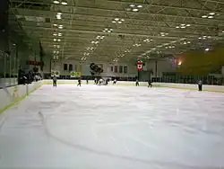 The building was built in 1970 for student recreation and as the home first of a club hockey team known as the "Clippers" from 1970–1980 and later for the varsity Kent State Golden Flashes men's ice hockey team, which played there from 1980 through the 1993–94 season when the university eliminated NCAA ice hockey due to budget concerns.[1] From 1992 to 1994 the team was a member of the Central Collegiate Hockey Association (CCHA). Since 1994, the arena has hosted the men's club-level team, which competes in the American Collegiate Hockey Association (ACHA) Division I as a member of the College Hockey Mid-America (CHMA). An additional club team that competes in the Division III level of the ACHA as a member of College Hockey East began play in 2019.[2] The ice arena also hosts the Kent Cyclones youth teams as well as four area high school teams: Theodore Roosevelt High School in Kent, Western Reserve Academy and Hudson High School in Hudson, and Stow–Munroe Falls High School in Stow.[3] The arena is also home to the Kent Skating Club, associated with the United States Figure Skating Association.[4][5] In 2021 the university announced plans to create a facility for the university's marching band there due to a planned loss of facilities elsewhere on campus.[6]