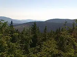 - ^ The forest stand of the entire Jeseníky Protected Landscape Area includes: European spruce 84%, European beech 10%, European larch 1.5%, sycamore maple 1.1%, birch 1%, common alder 0.8%, dwarf mountain pine 0.4%, grey alder 0.3%, (European silver fir, European ash, and linden) 0.2%, Scotch pine 0.1%, and others (Pinus mugo, oak, hornbeam, Norway maple, elm, rowan, green alder, aspen, poplar, and goat willow) 0.2%.[9]