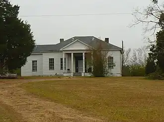 The Kerby House, also known as the Randolph Plantation, is a historic Greek Revival plantation house and historic district in Prairieville, Alabama, United States. This area of Hale County was included in Marengo County before the creation of Hale in 1867.[2] The Kerby House was built in 1850 by the Randolph family. The main block is a one-story structure with a five-bay facade. A one-story wing joins the main block on the eastern side. The central bay is covered by a pedimented portico, supported by four simple box columns. The entrance door surround is in the Greek Revival-style. It is included in the Plantation Houses of the Alabama Canebrake and Their Associated Outbuildings Multiple Property Submission.[3] The property was added to the National Register of Historic Places on July 7, 1994, due to its architectural and historical significance.[1]