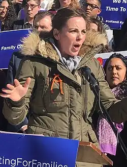 Donovan sponsored legislation in the state senate which would create a paid family leave system which would be paid for by having employees pay 0.99% of their salary.[23] She and Representatives Marc Catlin and Dylan Roberts introduced legislation which called for the Regulatory Agencies and Health Care Policy and Financing departments to create a public healthcare option that would add to Connect for Health Colorado, Colorado's medical care exchange.[24]