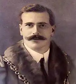 Philip Wyndham Cobbold was born in 1875 in Ipswich. His family owned the brewing company Cobbold and Co. and Philip joined the family business. In 1902 he married Cecily Augusta Nevill.[7] Philip became the Mayor of Ipswich in 1910-11 and a photo of him at this time is shown. The photo of Kesgrave Hall in 1907 shown is taken at the time the Cobbold family was in residence there.