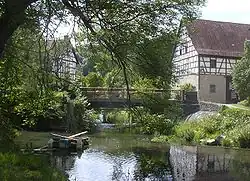 The Kessach is a river of Baden-Württemberg, Germany. The 24-kilometer-long river flows into the Jagst in Widdern.