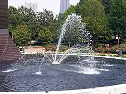 The Kessler Campanile is an 80-foot-tall (24 m) campanile located at the Georgia Institute of Technology.[1][2] Designed by artist Richard Hill,[3] a University of Georgia graduate,[4] it was originally constructed for the 1996 Olympic Games.[5] It is named after Richard C. Kessler, Tech graduate and former head of Days Inns. It is frequently referred to as "The Campanile" or "The Shaft" (a tongue-in-cheek reference to student opinion on the school's difficult curriculum). The amphitheater and the Campanile reopened in 2011 after a two-year-long reconstruction as part of the ongoing Clough Undergraduate Learning Commons construction.[6]