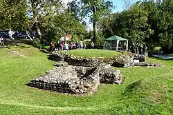 In the valley below the village are the ruins of a complex of 3rd century AD Roman tombs and mausolea (51°21′04″N 0°01′48″E / 51.3511068°N 0.0299549°E / 51.3511068; 0.0299549) connected with the nearby 1st - 4th century AD Roman villa excavated 1967-1992 (51°21′02″N 0°01′44″E / 51.3506679°N 0.0287962°E / 51.3506679; 0.0287962).[2][3]