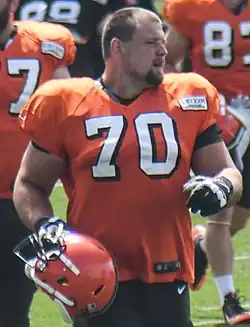 Kevin Zeitler (/ˈztlər/ ZYTE-lər; born March 8, 1990) is an American professional football guard for the Tennessee Titans of the National Football League (NFL). He played college football for the Wisconsin Badgers, and earned consensus All-American honors. He was selected by the Cincinnati Bengals in the first round of the 2012 NFL draft and he has also played for the Cleveland Browns, New York Giants, Baltimore Ravens, and Detroit Lions.