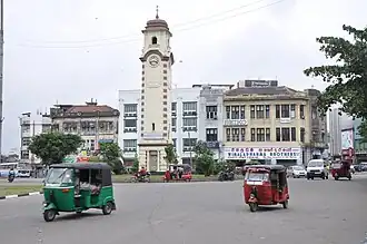 The Khan Clock Tower was built in Colombo, Sri Lanka by the Khan Family of Bombay. The Clock Tower is a popular landmark and marks the entrance to Pettah Market. The Clock Tower was built in the early 20th century by the family of Framjee Bhikhajee Khan. This Parsi family hailed from Bombay, India and also owned the famous Colombo Oil Mills as well as other business interests in Ceylon, as Sri Lanka was then called.