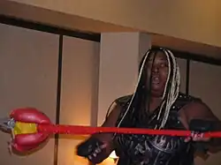 On December 29, 2010, it was reported that Stevens had signed a contract with WWE.[77][78] From April 11, 2011, onwards, vignettes aired during WWE television with Stevens, whose face was concealed by shadows and her signature braids, dismembering female dolls while cackling maniacally.[79] During the April 25 episode of Raw, Stevens' face was shown for the first time in the vignettes, and her new ring name was revealed as Kharma.[3] Kharma made her debut on May 1 at Extreme Rules, attacking Michelle McCool after a match,[80] and she continued to attack former WWE Divas Champions on both Raw and SmackDown in the following weeks.[81][82] On the May 23 episode of Raw, Kharma interrupted a tag team match but rather than attack everyone, she uncharacteristically broke down crying.[83]