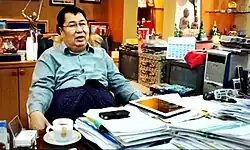 H.E. Dr. Khin Shwe (Burmese: ခင်ရွှေ; born 21 January 1952) Burmese business tycoon who developed the company from a SME Construction company into one of the leading local property company and positioned Zaykabar Company Limited as holding company for many of its subsidiaries which involves Property Development, Hotel & Tourism, Banking & Investment, Industrial, Road Development, Trading, Media and Technology sectors. He served as a Member of parliament in the House of Nationalities for Yangon Region № 9 constituency from 2011 to 2016 and was later expelled from the USDP as he was close to Aung San Suu Kyi.[2] He is the chairman of Zaykabar Construction, one of the country's largest construction companies.[3][4] He also serves as chairman for the National Development Group of Companies, Myanmar Tourism Board and the Myanmar Construction Entrepreneurs Association.[5][6][7]