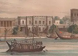 House of Hafizullah on the bank of Buriganga River (1847 lithograph)
