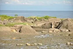 The series of cutting that was done at Kibiro showed a series of stratified deposits that had accumulated over a period of 700–800 years up to the present and they seemingly resulted from both domestic and industrial activities.[22] When the cuttings were more closely examined, they found that Cuttings I, III and IV were all found to be horizontal but in comparison, Cutting II was found to be tilted, in areas that were very steep.[22] “Cutting II was located at the edge of what seemed the deepest archaeological deposits, revealed sloping rock rubble which had probably resulted from long continuance of the practice of removing stones from adjacent salt-gardens and heaping them out of the way”.[22] The other cuttings had a variety of thicknesses which were made up of earth, sand, gravel or silt, blended with stones that were different sizes and also had a phenomenal number of potsherds in the majority of the cases.[22] In the process of excavating Cutting II, there was one hearth that was discovered which was believed to have been used in the process for salt-boiling.[23] With the hearths being uncovered it also brought to light that the making of salt in Kibiro was produced throughout the occupation.[23] According to Graham Connah in his article published in 1991, he states that “because Cutting I was a limited test-hole, Cutting II had partly tilted deposits, and Cutting IV sampled the shallower part of the archaeological deposits near the edge of Lake Albert, Cutting III provides the most reliable and most complete stratified sequence.[23]