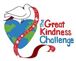 In 2008 Kids for Peace launched an annual event called The Great Kindness Challenge. It takes place on the second Saturday in August and is open to youth of all ages. The Great Kindness Challenge is one day where kids around the world dedicate themselves to performing as many acts of kindness as possible, using a checklist of 50 suggestions. These acts of kindness range from holding the door open for someone to cleaning up a local park to making sack lunches for homeless people. In 2009, The Great Kindness Challenge involved at least 35 countries, in six continents.[3] By 2024, the challenges has created over one billion acts of kindness across 135 countries.[4][5]
