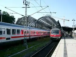 In 1999, a comprehensive renovation of the station started. Among other things, it received a new lobby. The intermediate level of the historic hall was removed and thus the former ceiling height were restored. The pedestrian walkway to the bus station on the north side of the station was demolished without replacement and the pedestrian walkway to the Sophienhof shopping centre was replaced by a steel and glass structure. The redesigned station forecourt and the foyer with shops on the concourse were inaugurated for Kiel Week in June 2004. The imperial steps on the east side have been restored. Due to financial and technical difficulties, the reconstruction was interrupted several times and only concluded in May 2006[4] with the completion of a new station hall, only the cross-walk at the end of the platforms is still in its original condition although it has been refurbished. The total cost of the conversion amounted to €60 million. The cost for the work in the station hall was estimated to cost around €30 million.[4] From 2013, there will be a further renovation of the station with the creation of tracks 2a and 6a. Track 2a was built outside the train shed with a connection to the platform for tracks 1 and 2. Tracks 6a is also built outside the train shed with a connection to the platform for tracks 5 and 6. These are needed to cope with the additional traffic on the Kiel-Rendsburg (-Fockbek) route and the Kiel–Schönberger Strand route from 2014.[5]