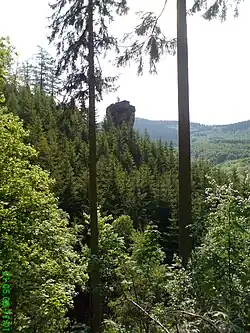 The Kilianstein is a free-standing rock tower on the Hopfenberg hill in the eastern part of the Sembach valley in central Germany. It stands about 800 m east of the (upper) village of Winterstein on the northern slopes of the Thuringian Forest in Germany.