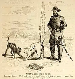 "About the Size of it" (Harper's Weekly, 1864) — General Grant. "Well, and what if it should come to a Kilkenny fight? I guess Our Cat has got the longest tail!"