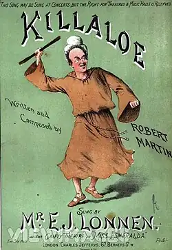 "Killaloe" is a popular march in the Irish Regiments of the British Army, written in 1887 by a 41-year-old Irish composer named Robert "Ballyhooly Bob" Martin of Ross, for the Strand located Gaiety Theatre musical production "Miss Esmeralda", a burlesque production based on "The Hunchback of Notre Dame". Mr E. J. Lonnen, playing Frollo the monk, sang the song to great acclaim.